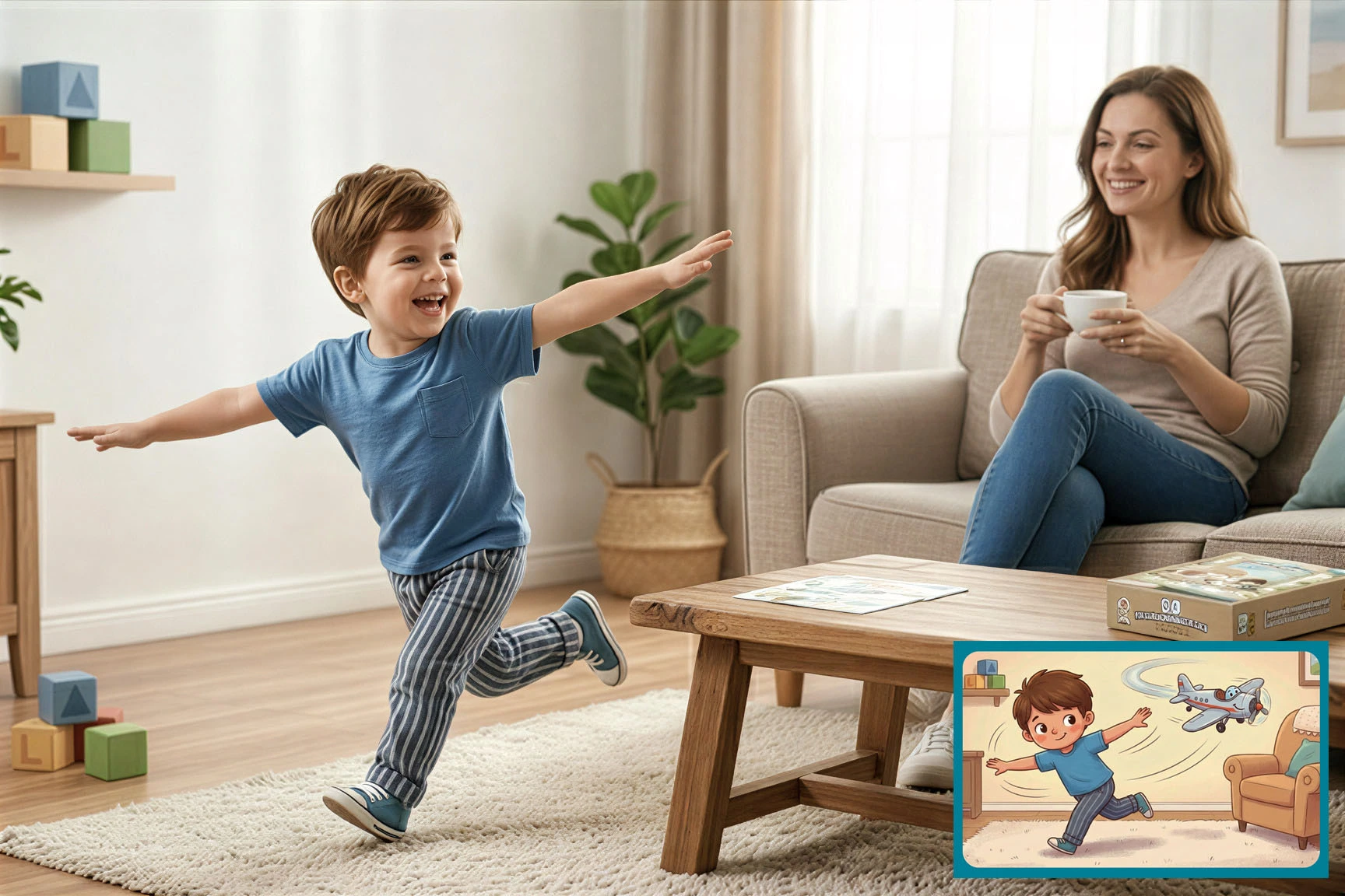 Тук няма чинове, няма звънци и със сигурност няма „Седни мирно“. И все пак се случва нещо важно. Докато скача като зайче, търси кръгли предмети или изпълнява тайна мисия на помощник, детето тренира концентрация, мислене и самостоятелност. Учи се да довършва започнатото. Да следва инструкция. Да помага, без да му се напомня. Развива емпатия, когато прави малки добрини у дома. Всичко това – без усещане за задължение. За него е игра. За теб е растеж. Най-хубавият вид учене е този, който идва тихо и остава дълго.