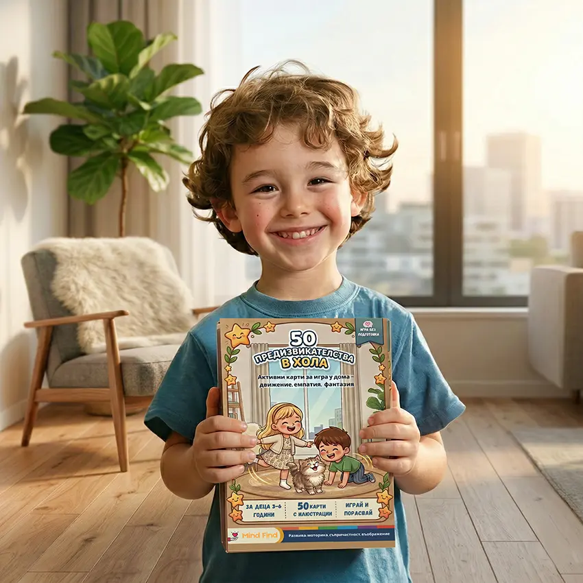 Вярваме, че децата не се нуждаят от повече екрани. Нуждаят се от пространство, доверие и малко въображение. Създадохме „50 предизвикателства в хола“, защото знаем как изглежда истинският живот – вечерята къкри, телефонът звъни, а едно малко човече пита: „Какво да правя?“. Вместо да измисляме всеки ден нови забавления, решихме да създадем нещо просто, красиво и работещо. Обичаме игрите, които развиват без да поучават. Харесваме чистия дизайн, топлите илюстрации и идеята, че детето може да бъде герой в собствения си дом. Правим продукти за заети, мислещи родители. И за деца, които могат повече, отколкото предполагаме. Това е нашият малък принос към по-спокойните следобеди и по-самостоятелните утрешни дни.